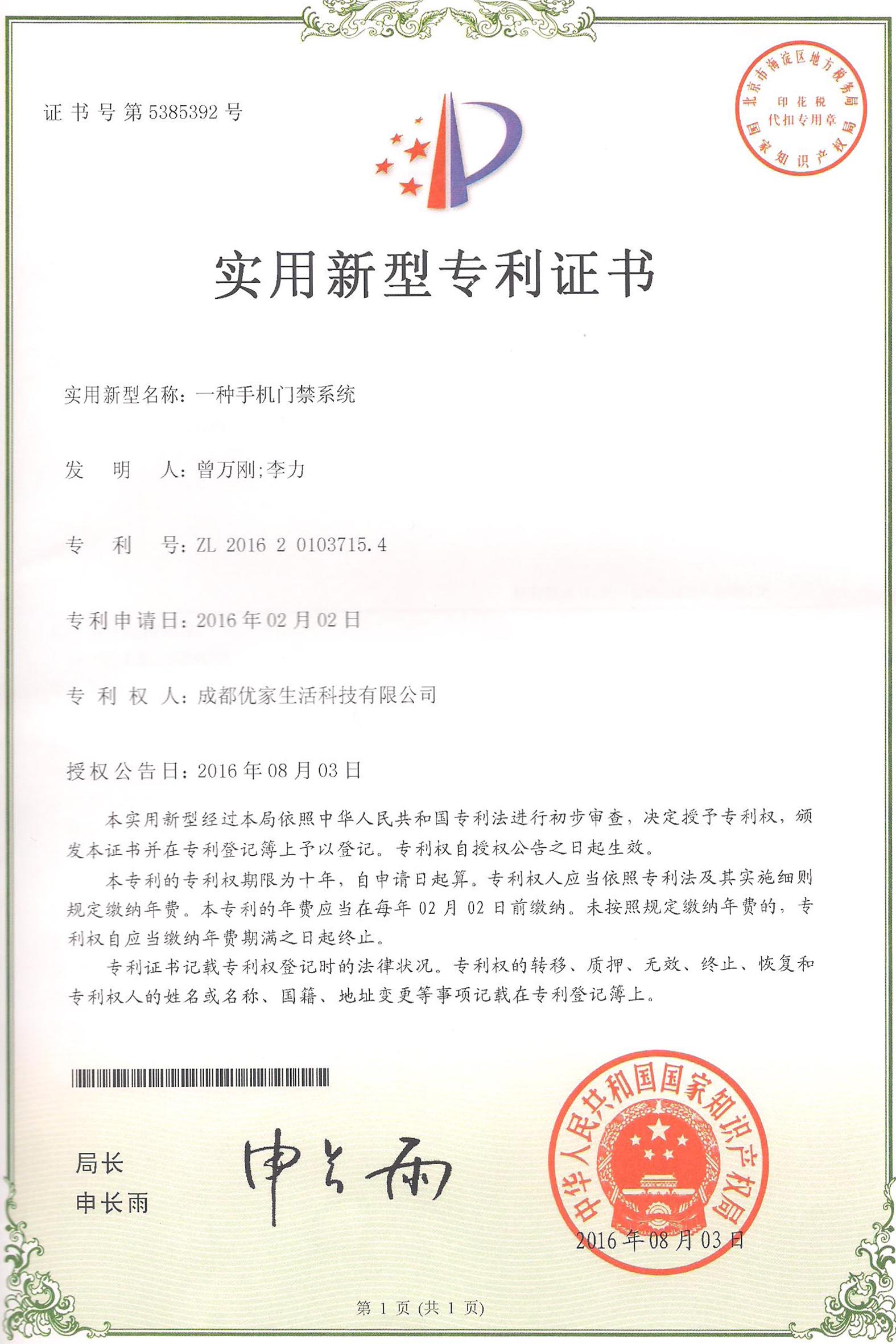 “邻社区”手机门禁系统获得一项实用新型专利授权。