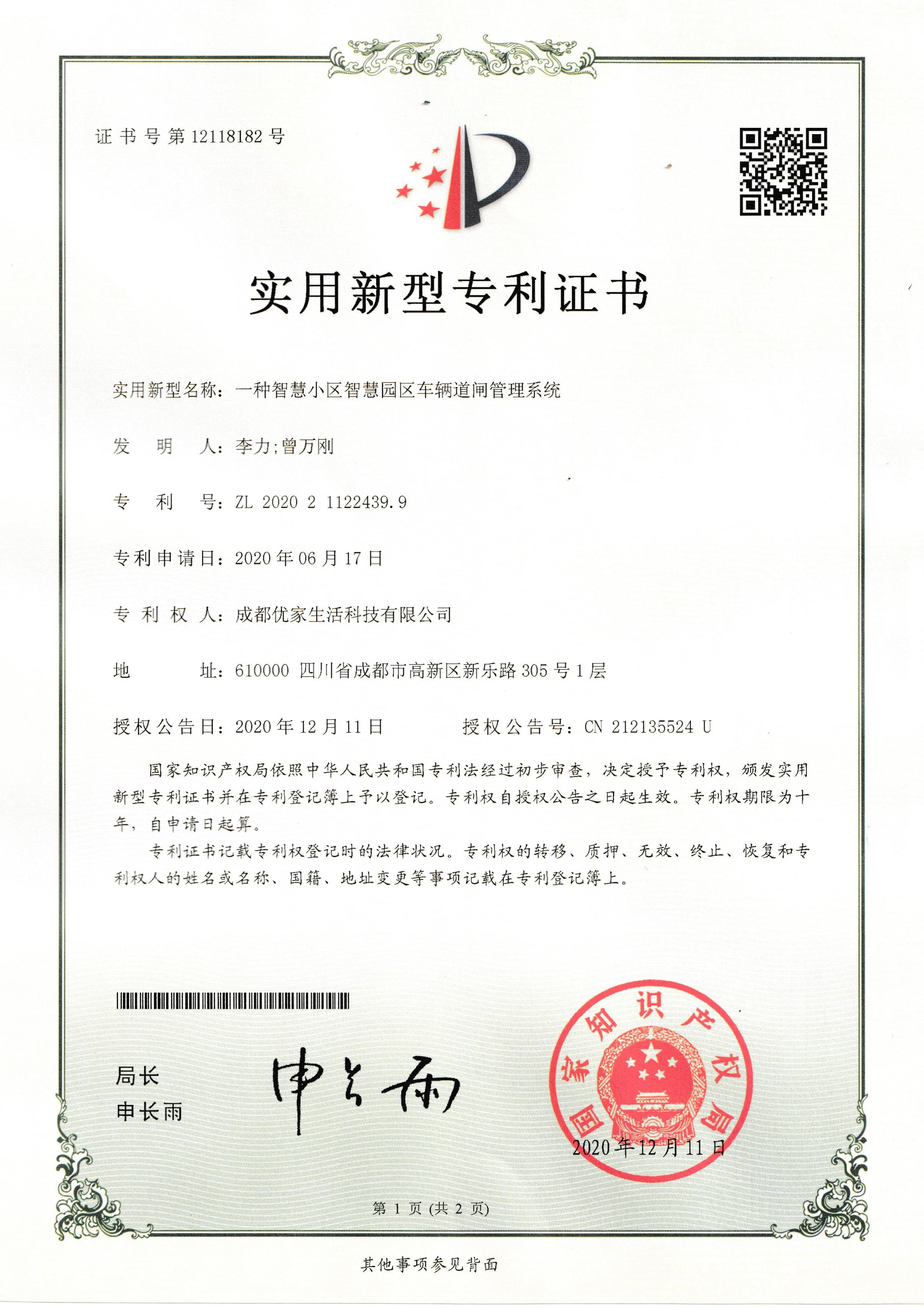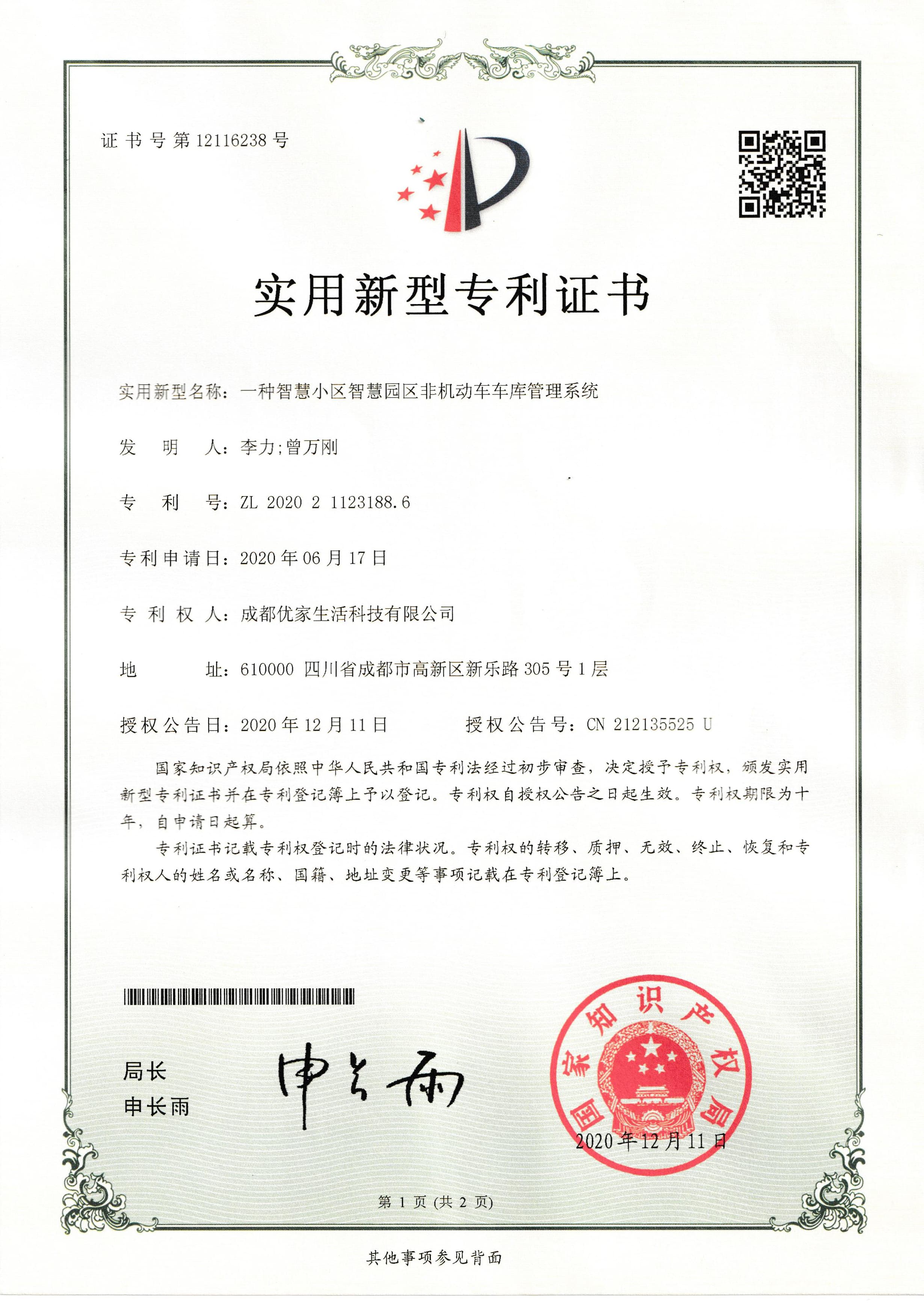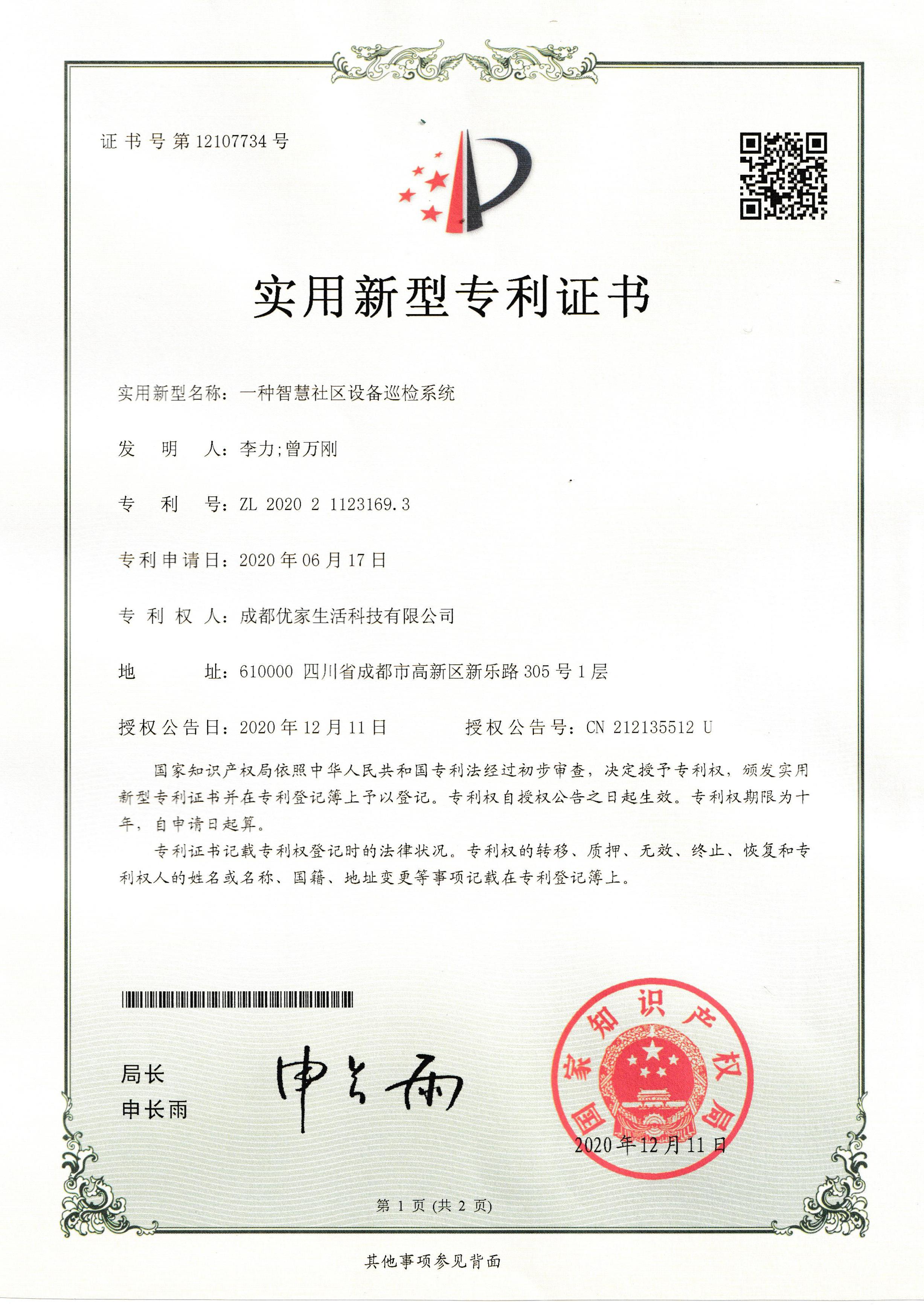 优家生活“一种智能社区巡逻检查系统”获得实用新型专利