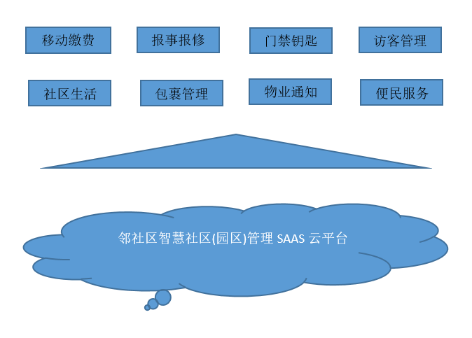 利用公司自主研发的“邻社区”云平台,住户可以完成在线自助缴费、自助报修、自助发放访客通行证等功能,物业公司可以在线发布公告、举办小区活动、进行物业服务满意度调查等,并能有针对性地对业主提供社区生活服务。“邻社区”云平台还可并入物业公司远程视频系统、物业远程呼叫中心、智能物业管理系统、智能安防系统、智能健康报警系统等,从而建设智慧社区和家园,使小区生活更加智能化。
